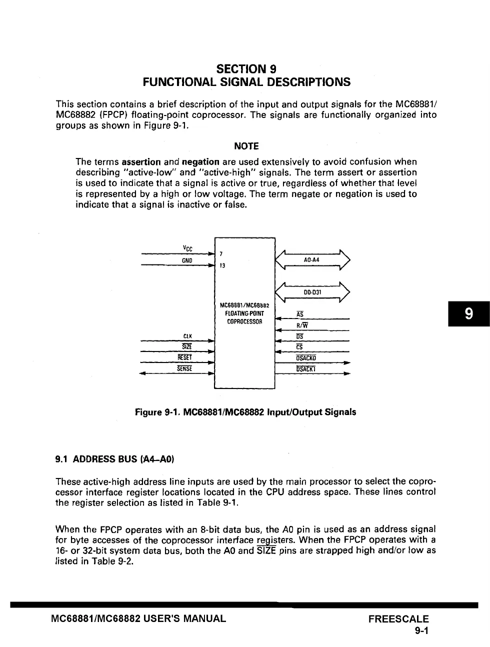 MC68882 (FPCP) floating-point coprocessor. The signals are functionally organized into