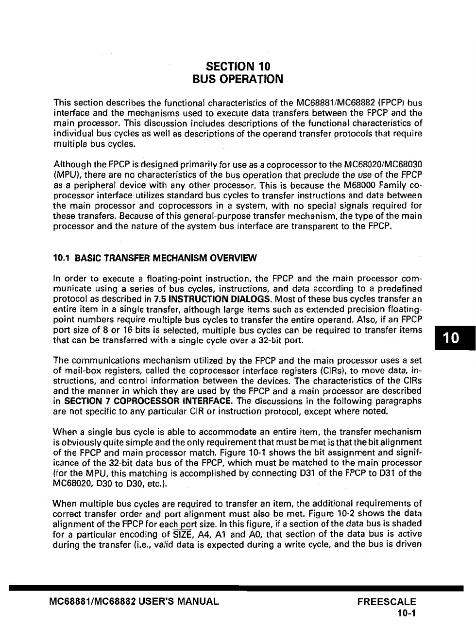 in SECTION 7 COPROCESSOR INTERFACE. The discussions in the following paragraphs