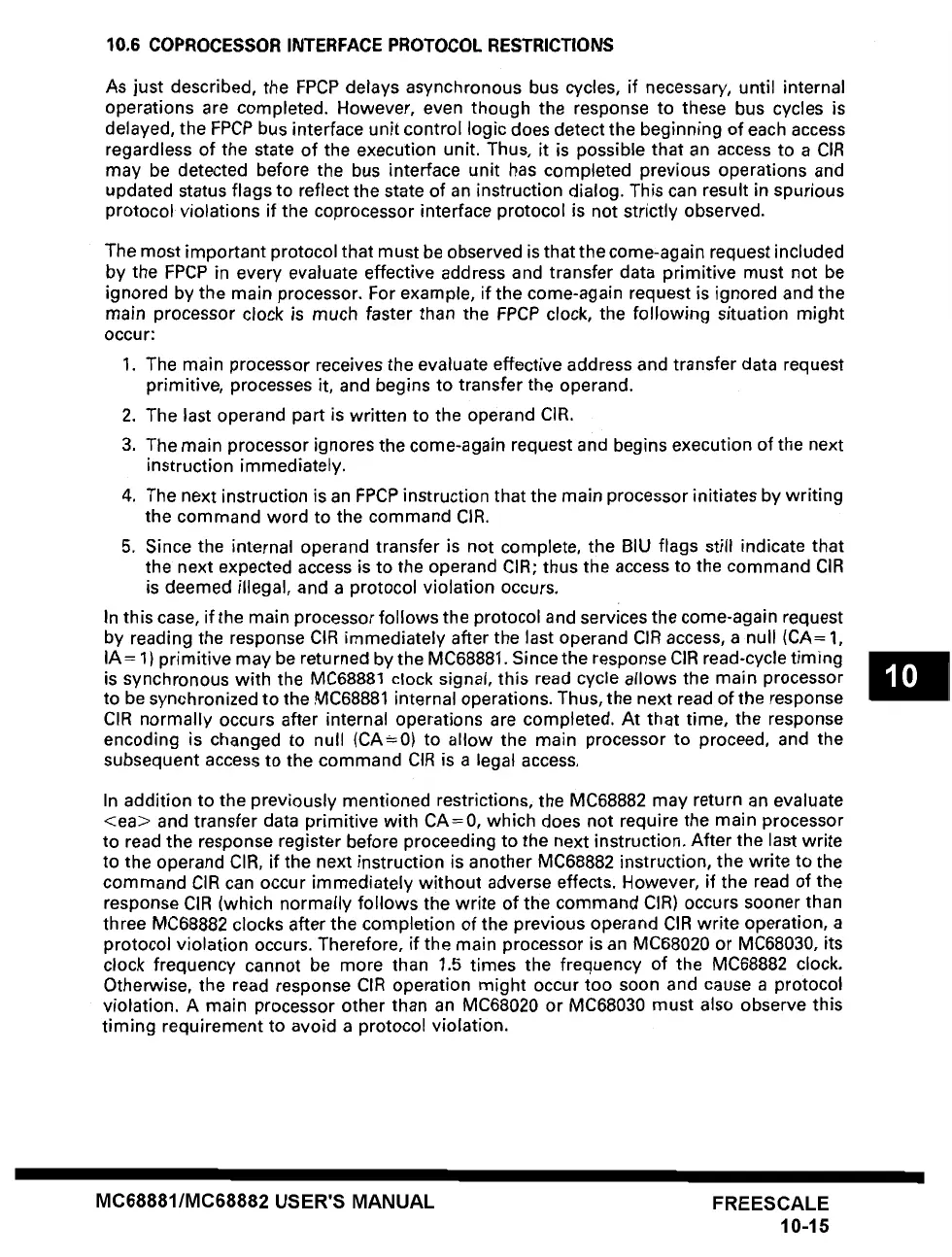 10.6 COPROCESSOR INTERFACE PROTOCOL RESTRICTIONS