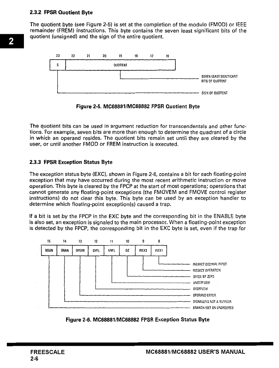 The quotient byte (see Figure 2-5) is set at the completion of the modulo (FMOD) or IEEE