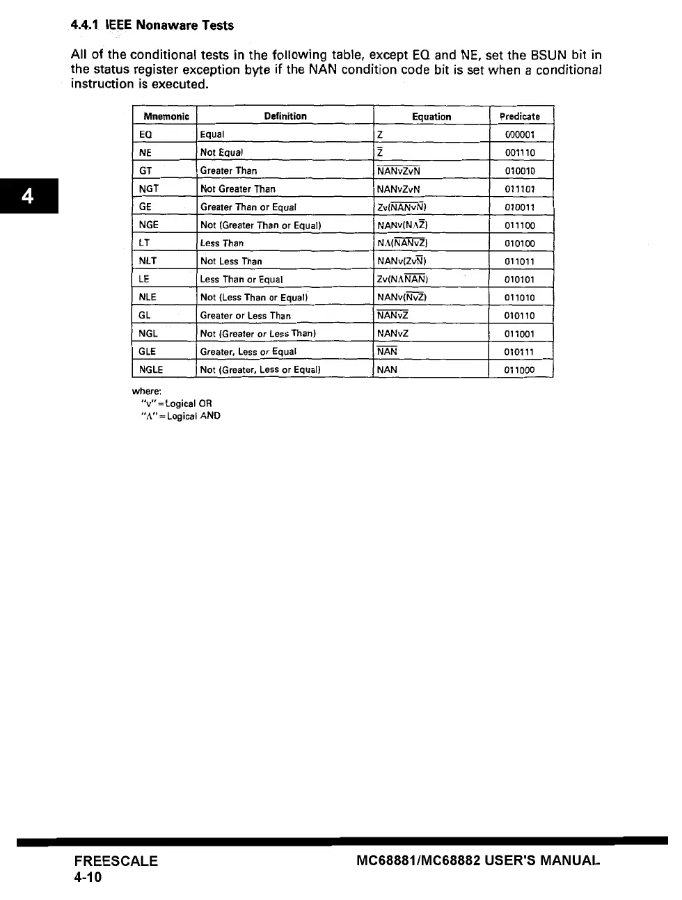 All of the conditional tests in the following table, except EQ and NE, set the BSUN bit in