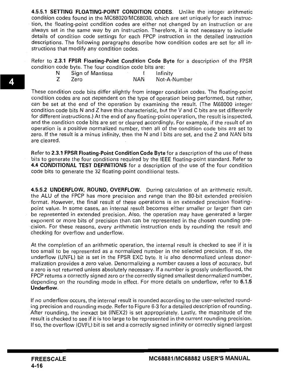 4.5.5.1 SETTING FLOATING-POINT CONDITION CODES. Unlike the integer arithmetic