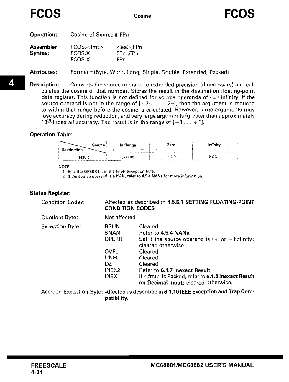 operand is a NAN, refer to 4.5.4 NANs for more information.