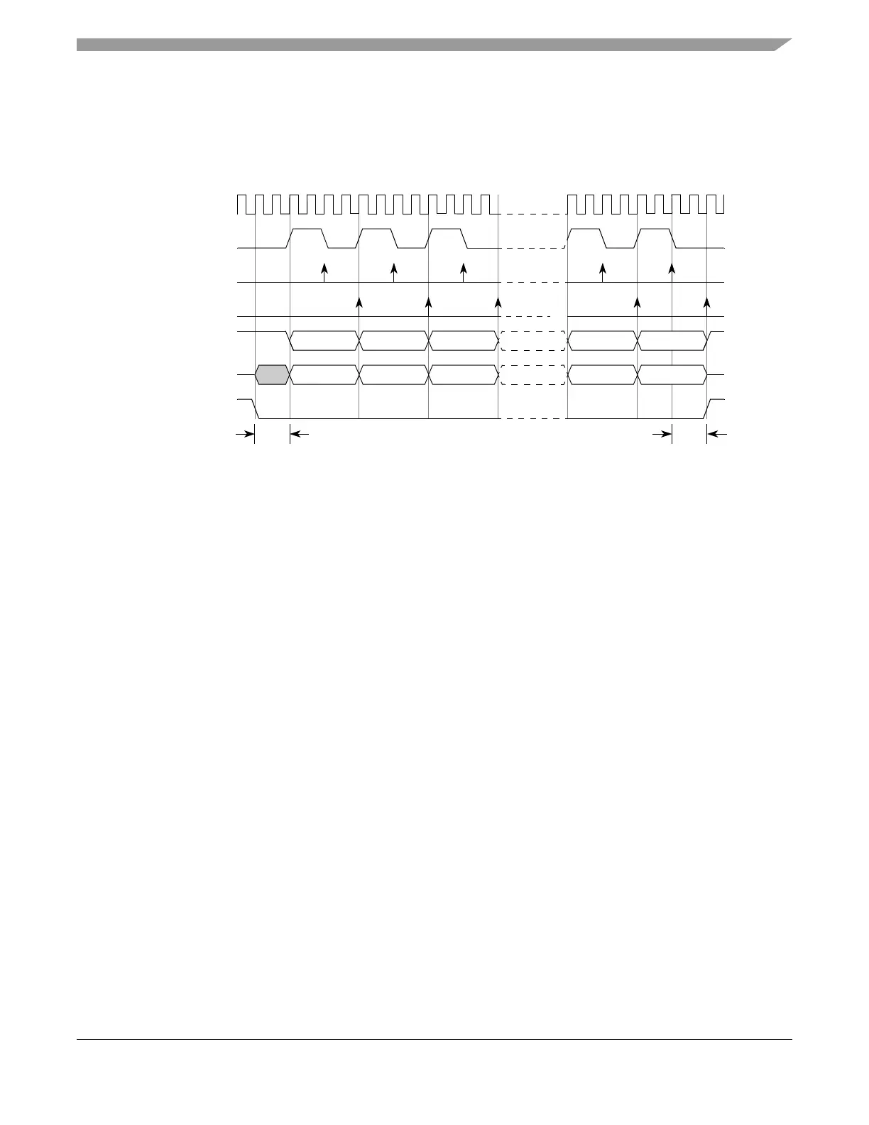 Figure 20-40 shows the timing diagram for two four-bit transfers with CPHA = 1 and CONT = 0.