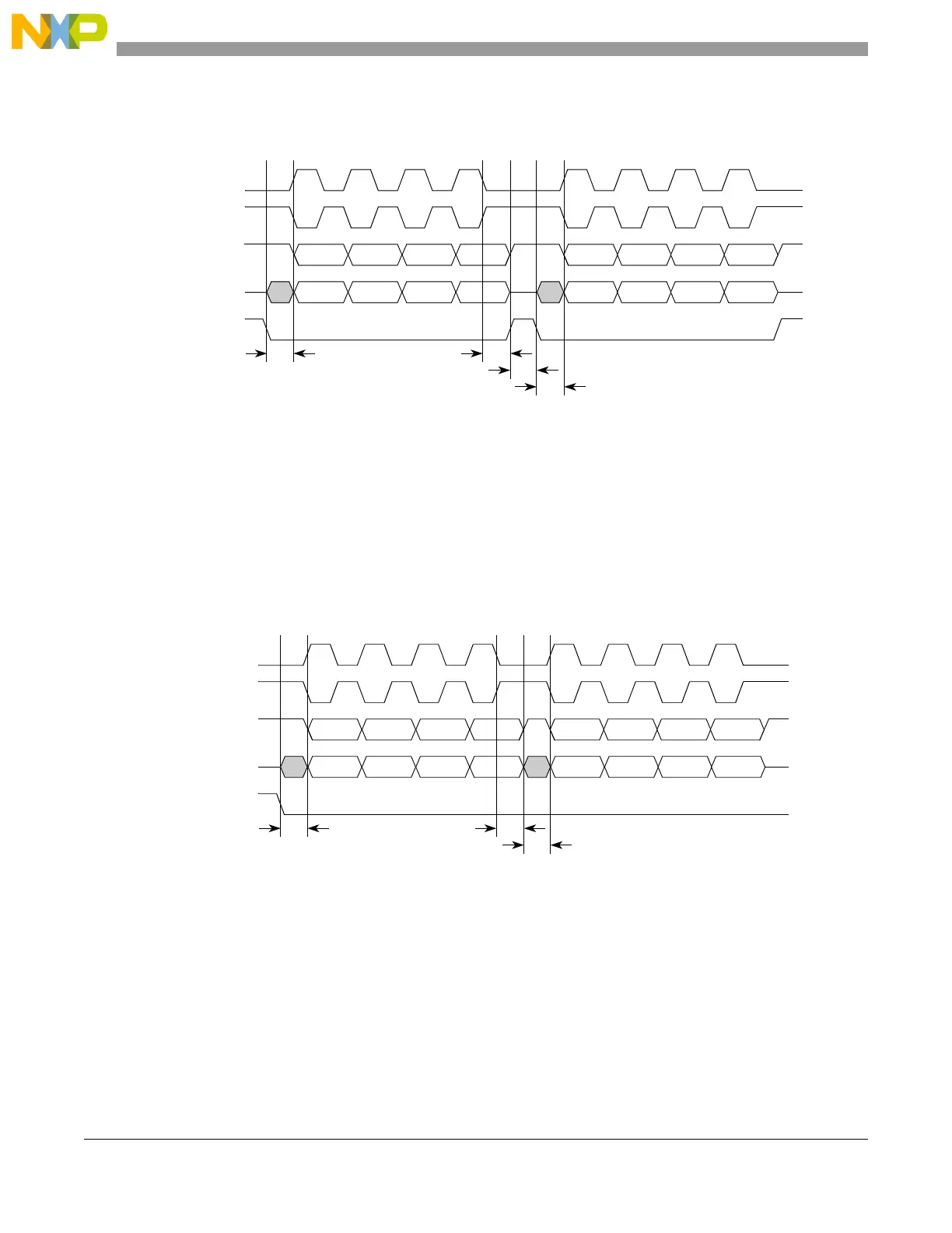Figure 23-21 shows the timing diagram for two 4-bit transfers with CPHA = 1 and CONT = 1.
