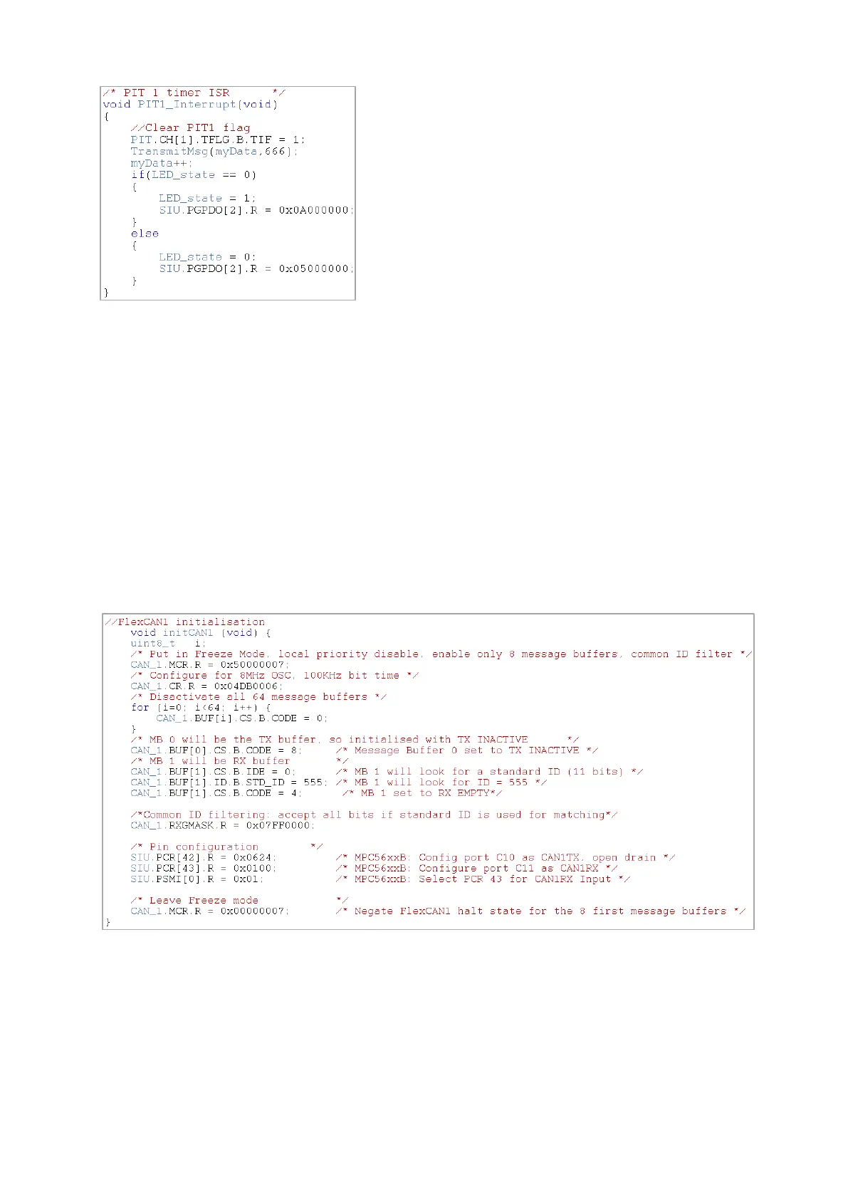 Here’s this program’s FlexCAN initialisation procedure, where global ID filters are used (for
