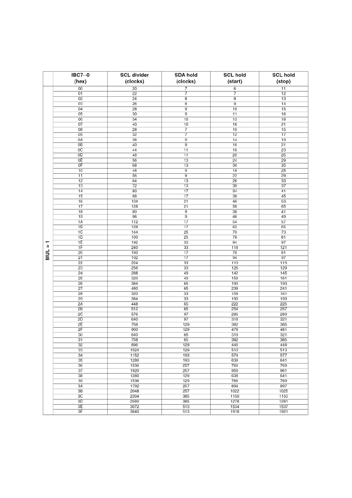 Freescale Semiconductor MPC5604B - Appendix 5 I²C Baud Rate Prescaler Values