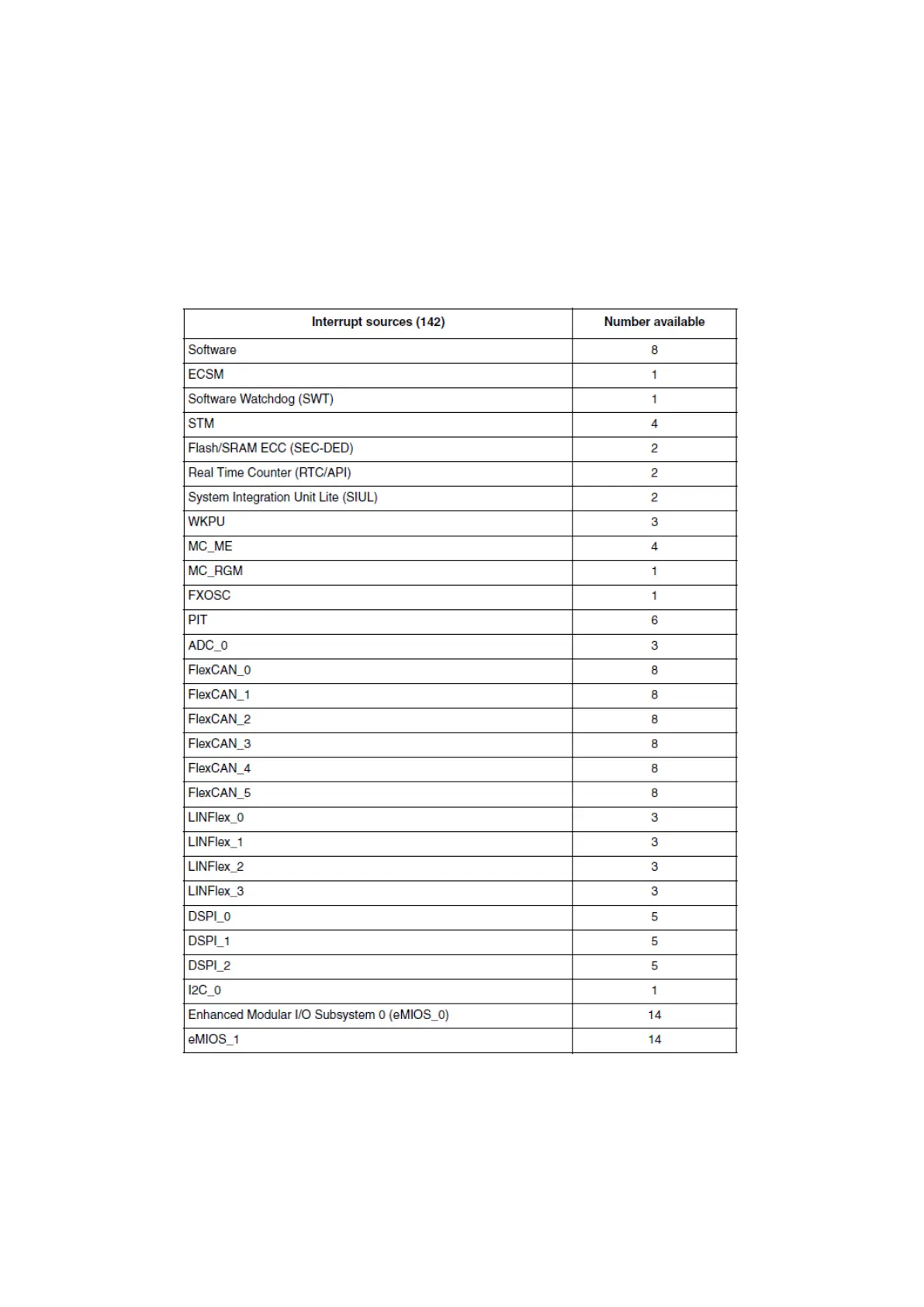 Figure 31 : Number of ISR vectors available for each interrupt source (R.M. Rev8 – Table 16-1)