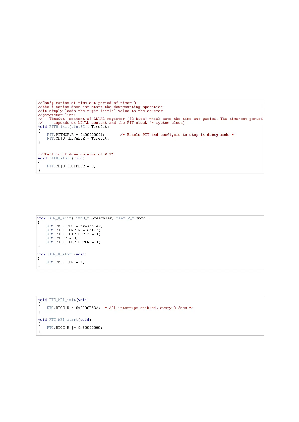 A timer configuration example has been built using STM, PIT and RTC/API where each module