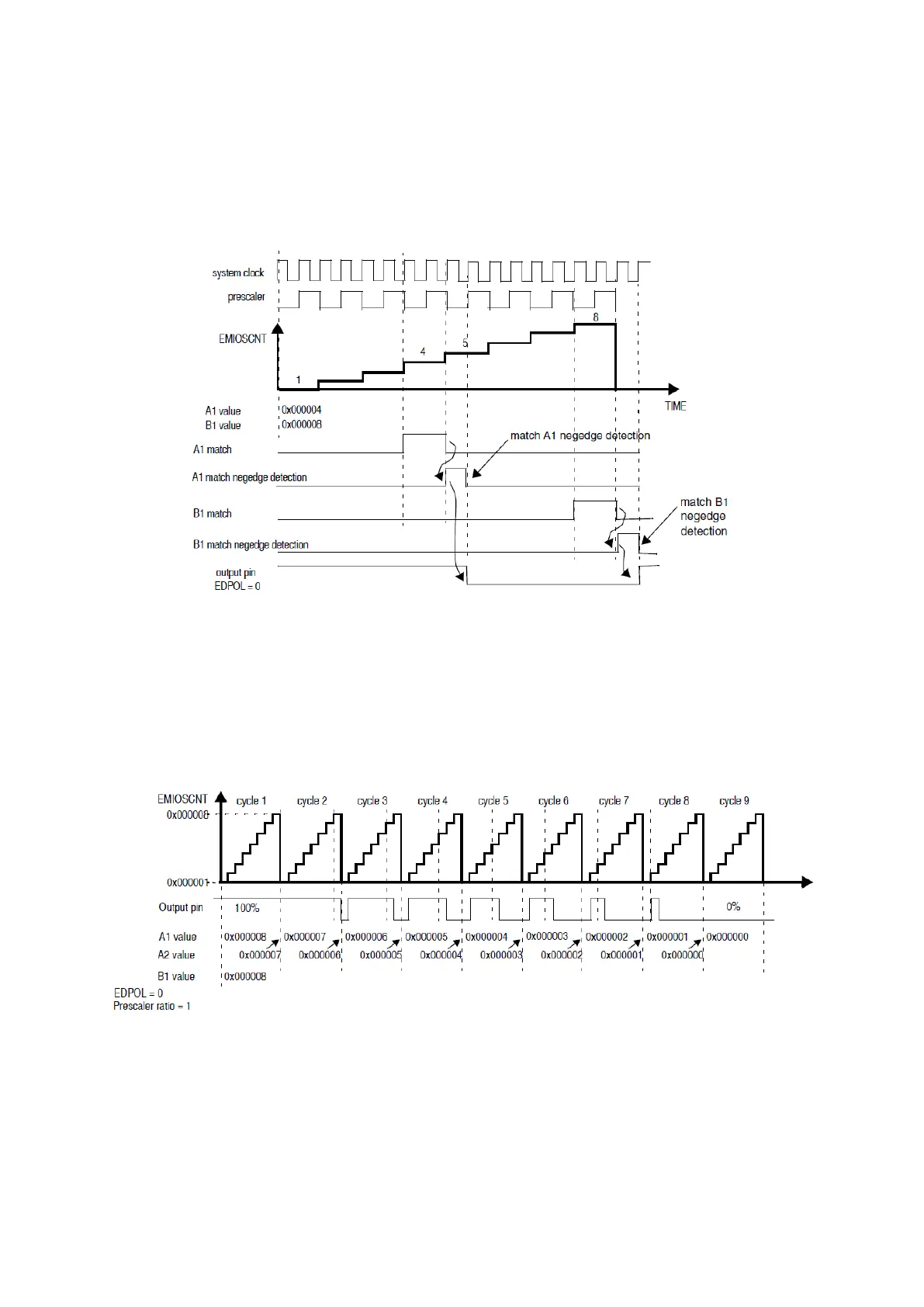 At entry, the output flip-flop is set to the value of EDPOL. When the internal counter match