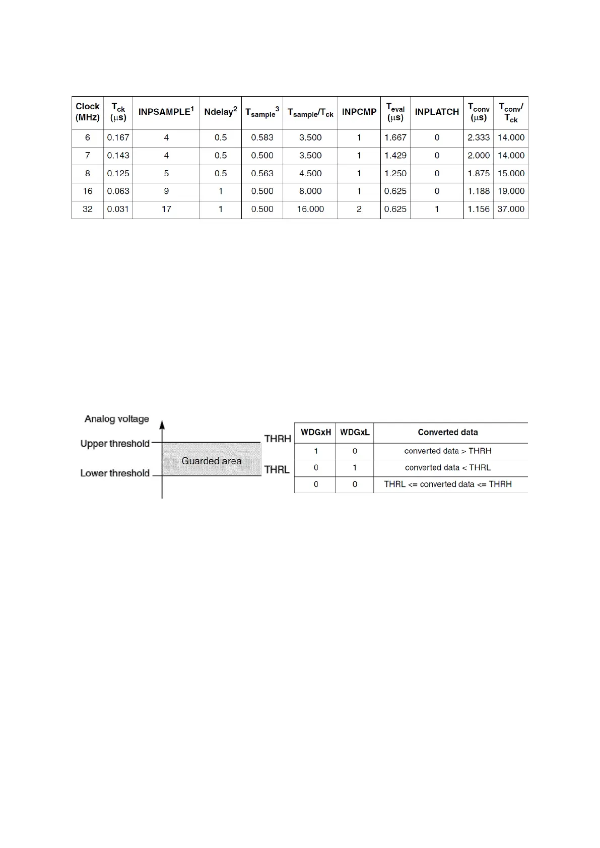 Figure 69 : ADC sampling and conversion timing (R.M. Rev8 – Table 25-2)