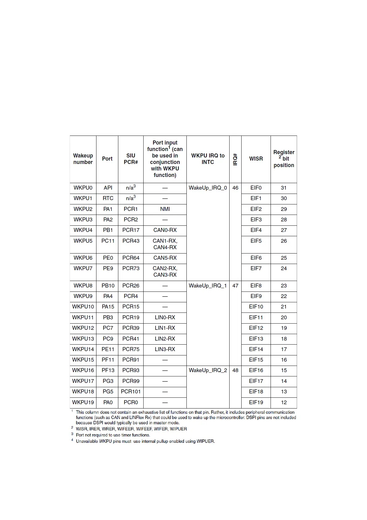The following table shows different wakeup sources, their id numbers, modules, IRQ