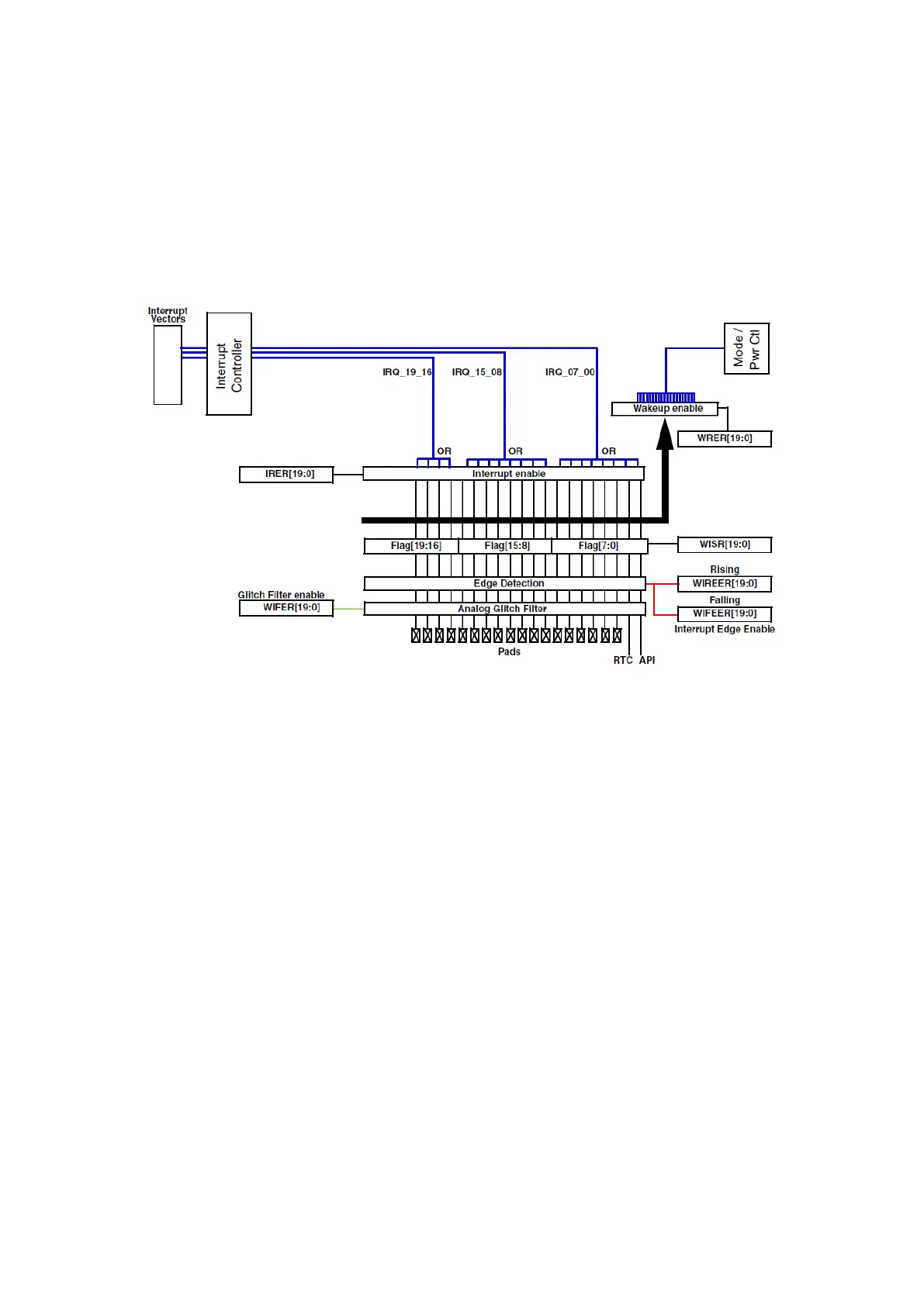 Then, Wakeup/Interrupt Rising/Falling-Edge Event Enable Registers (WIREER/WIFEER) with