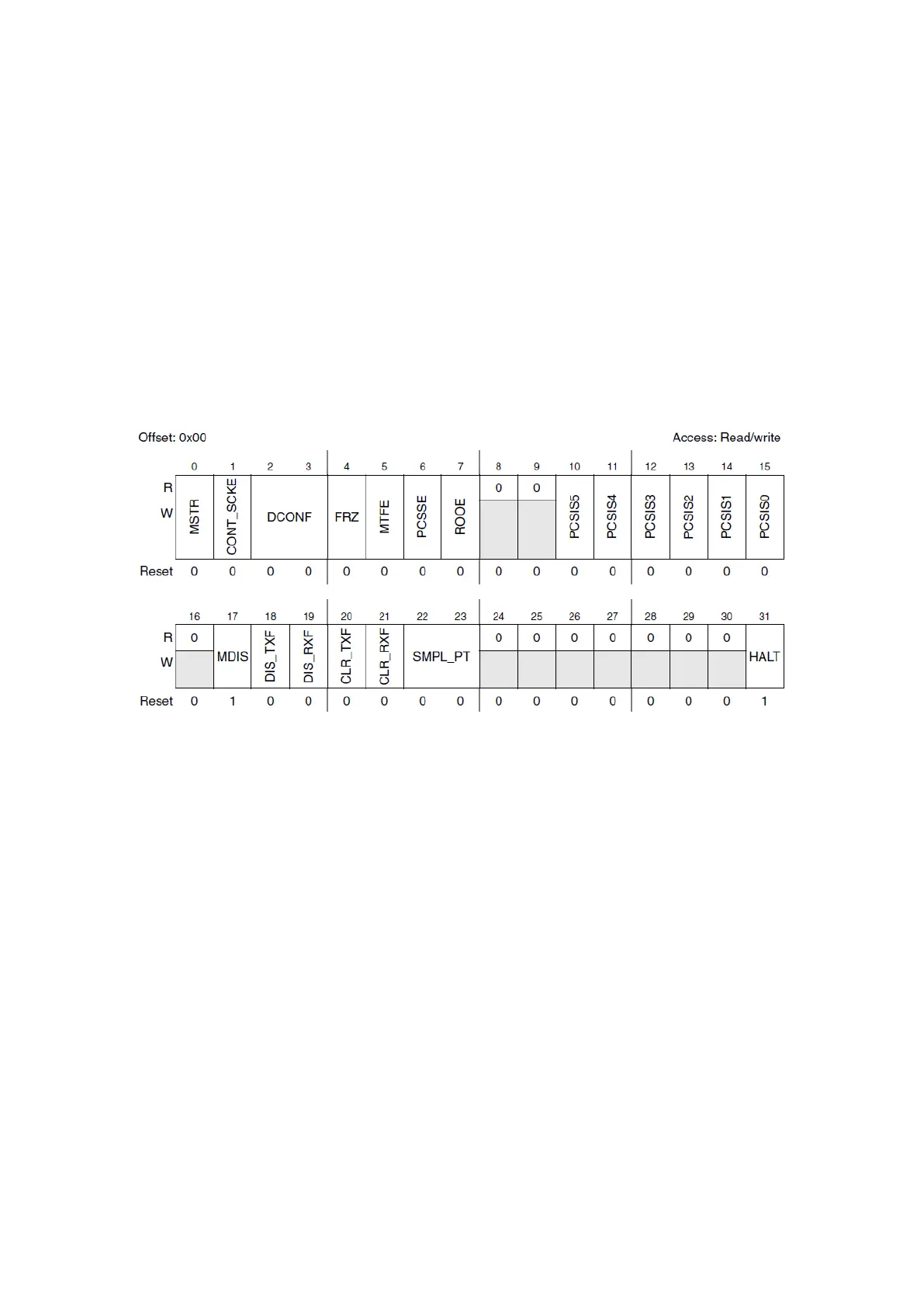 MSTR: Master/slave mode select (‘1’ for master),