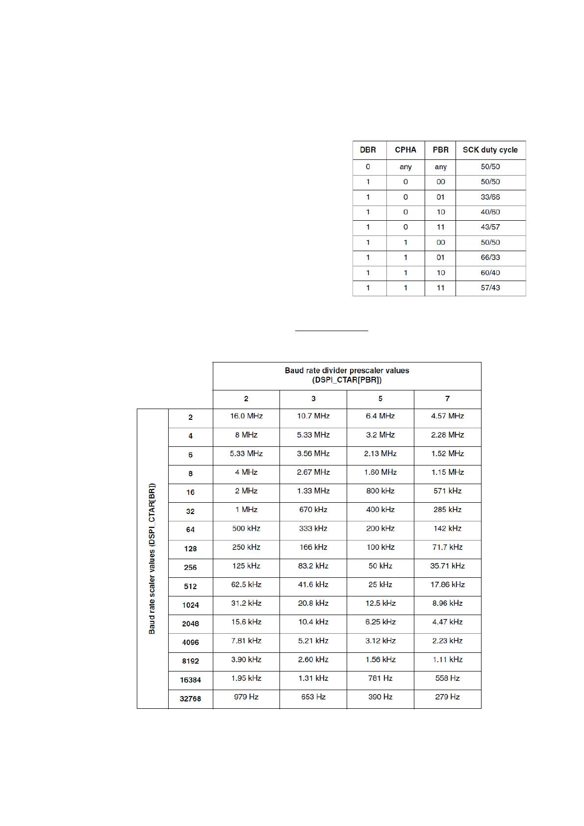 Figure 94 : Baud Rate values for a 64MHz system clock