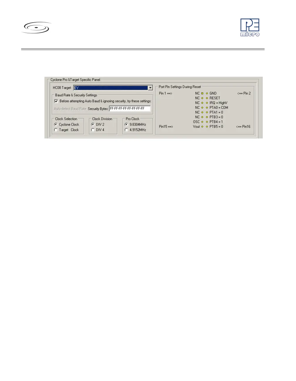 An external clock signal must be provided to the target MCU’s OSC pin. The