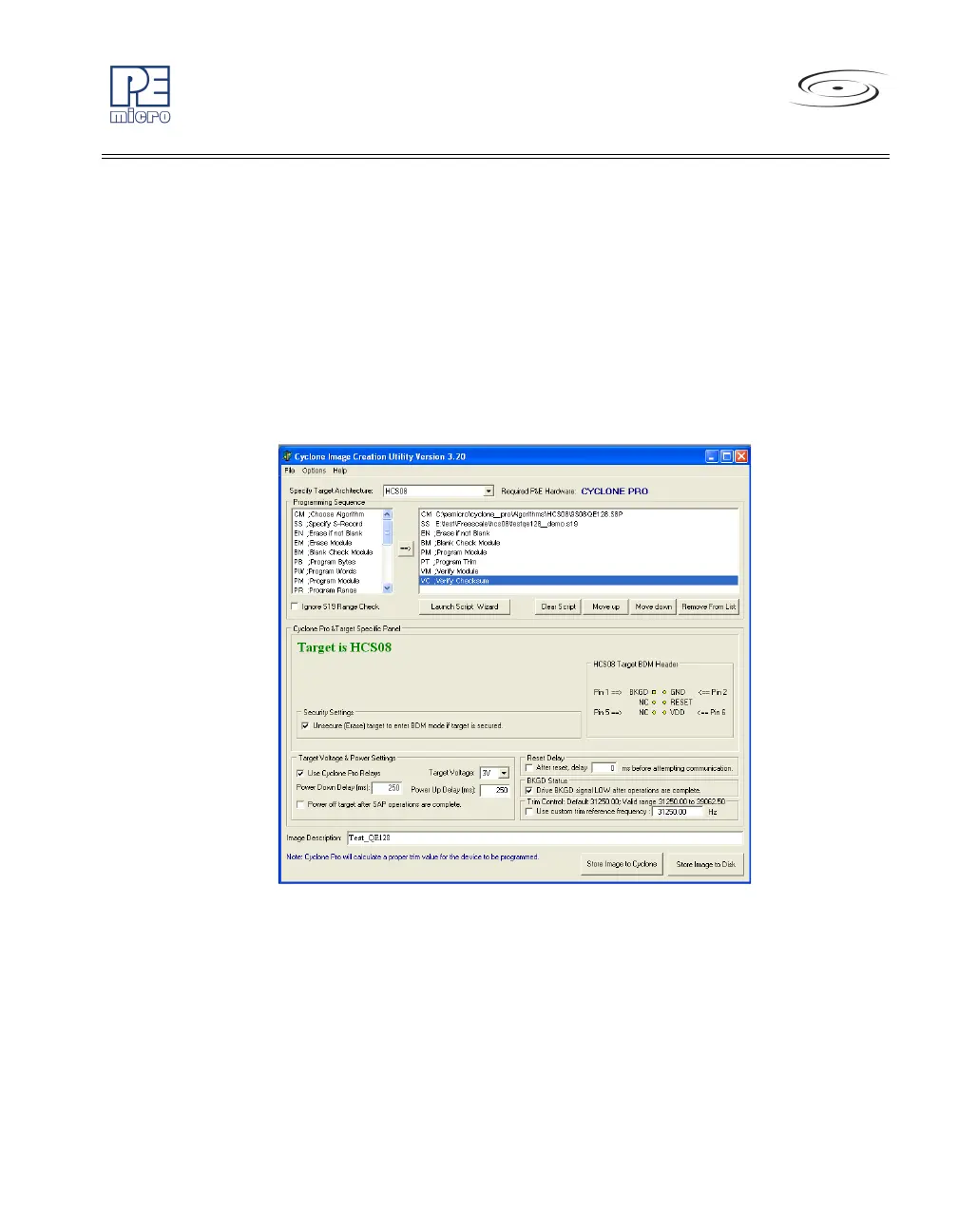 The user may configure the Cyclone PRO to operate on an HCS08 target by