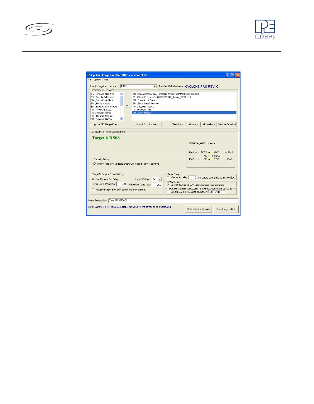 The user may configure the Cyclone PRO to operate on an HC08 target by