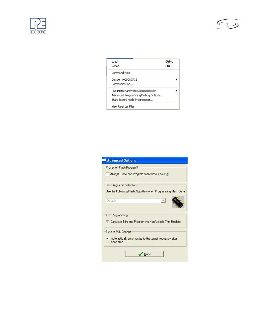 8.3.7.1 Start Advanced Programming/Debug Options