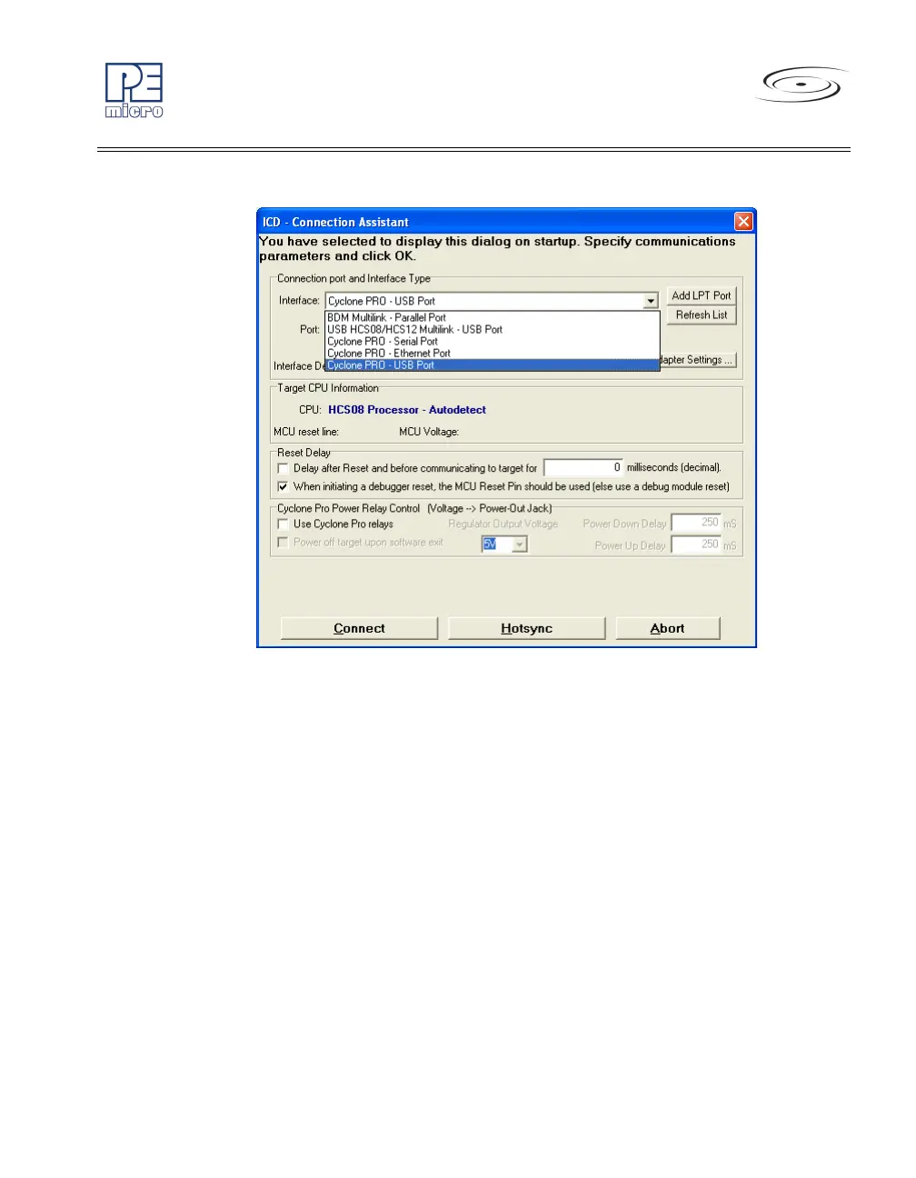 Figure 8-28: HCS08 Connection Assistant Interface Selection