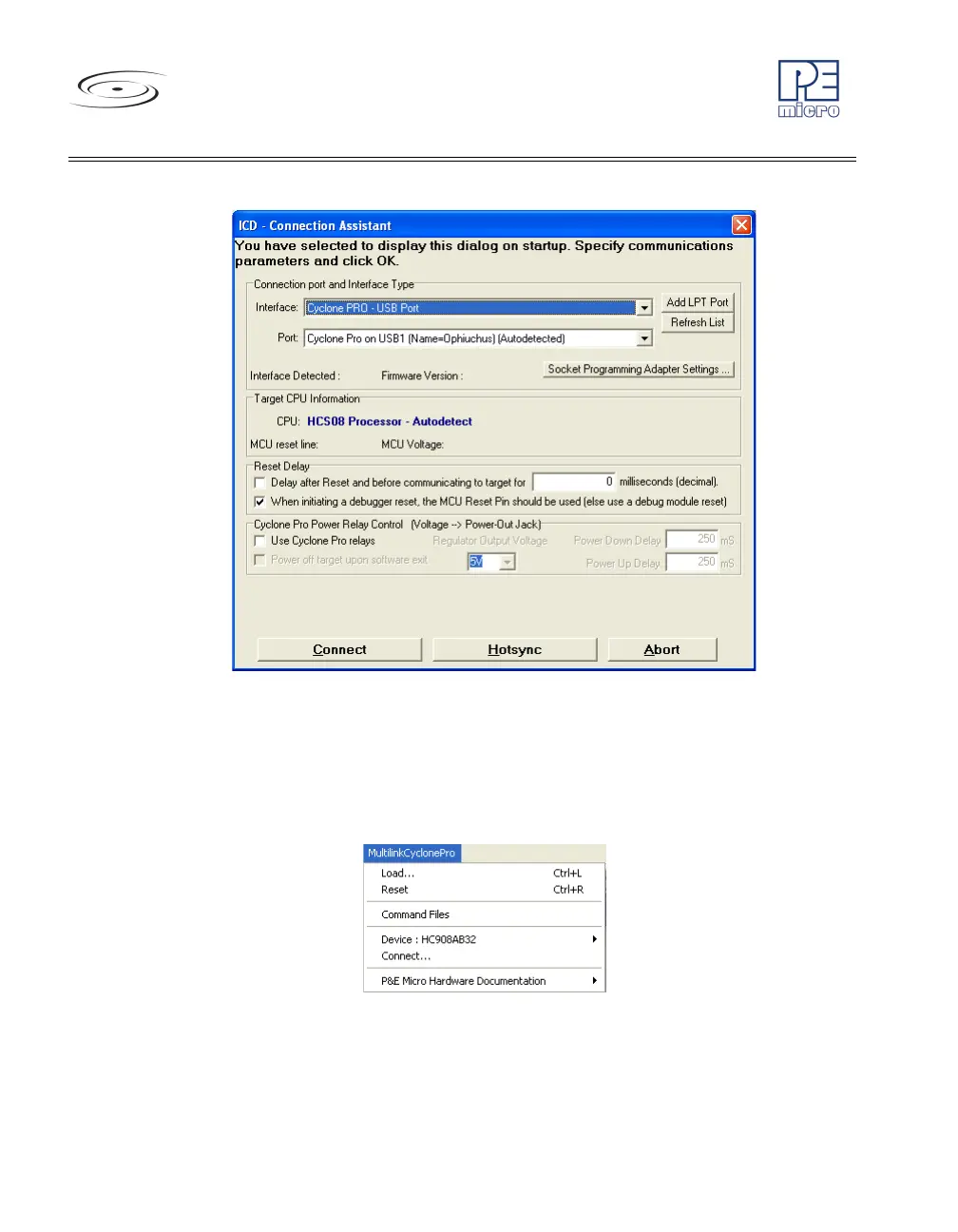 Figure 8-29: HCS08 Connection Assistant Interface Selected