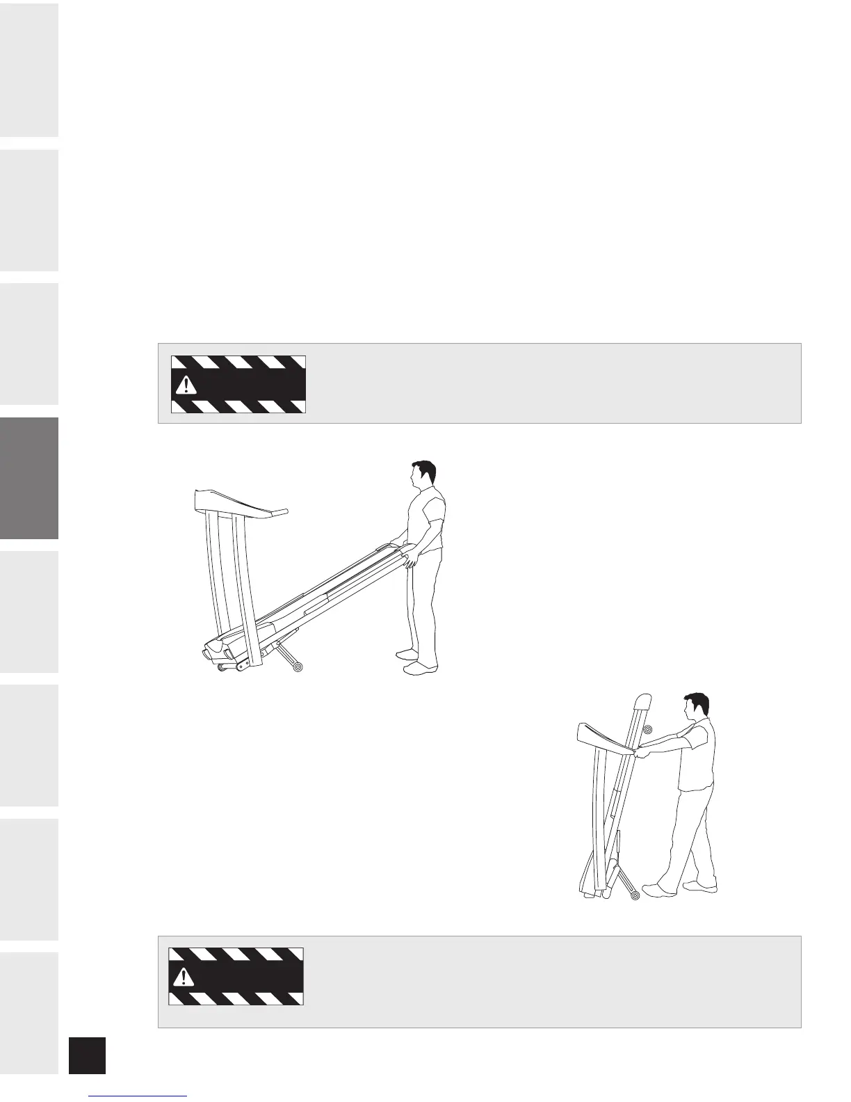 Do not attempt to move or transport treadmill unless it is in the upright, folded