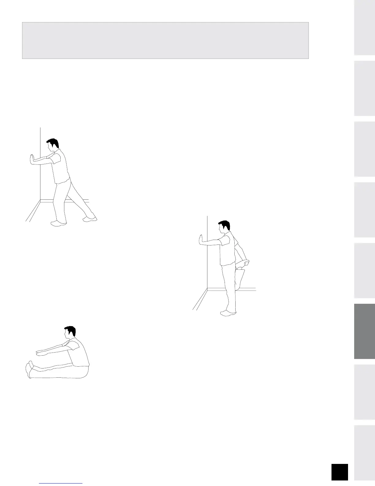 prior to exercise will improve flexibility and reduce chances of exercise related injury. Ease into each of these