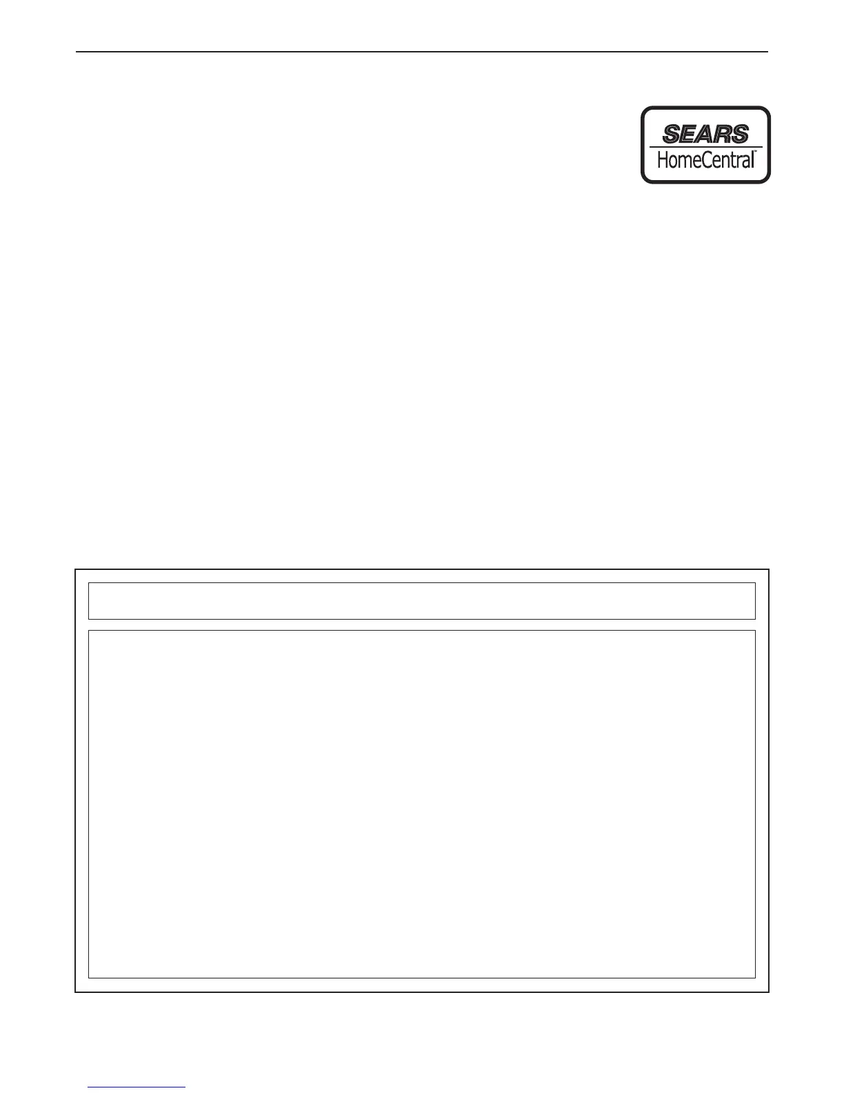 est Sears Canada, Inc. store, service center or call 1-800-469-4663.