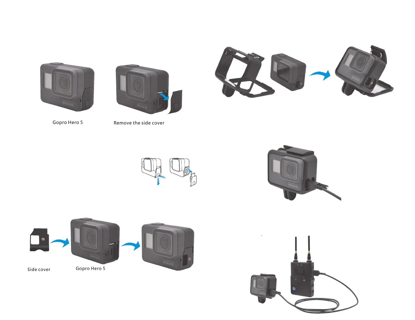 1. Remove the side cover of the Gopro Hero 5, and install the side