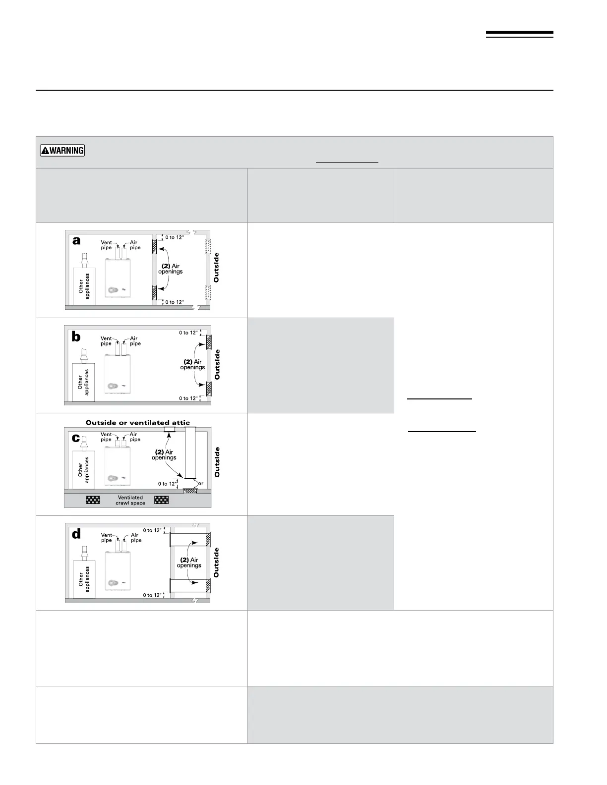 A single combustion air opening can be used for cases b, c or d above (