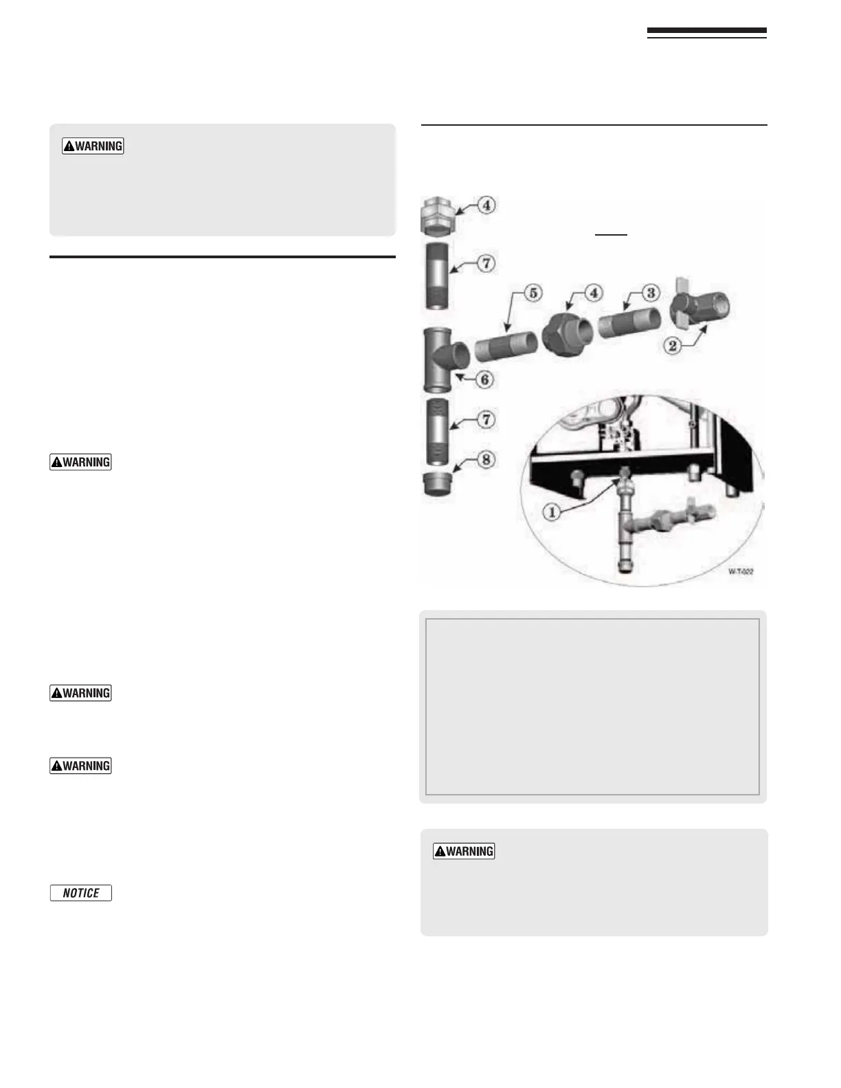 3. Connect gas supply piping to the ½” NPT gas cock (item 2).