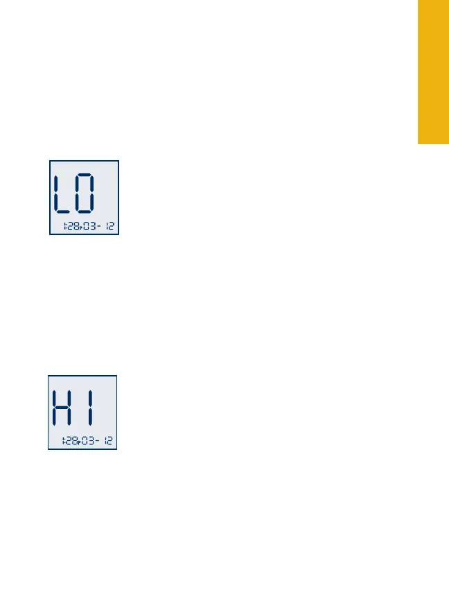 If your test result is lower than 20 mg/dL, LO will appear on the meter