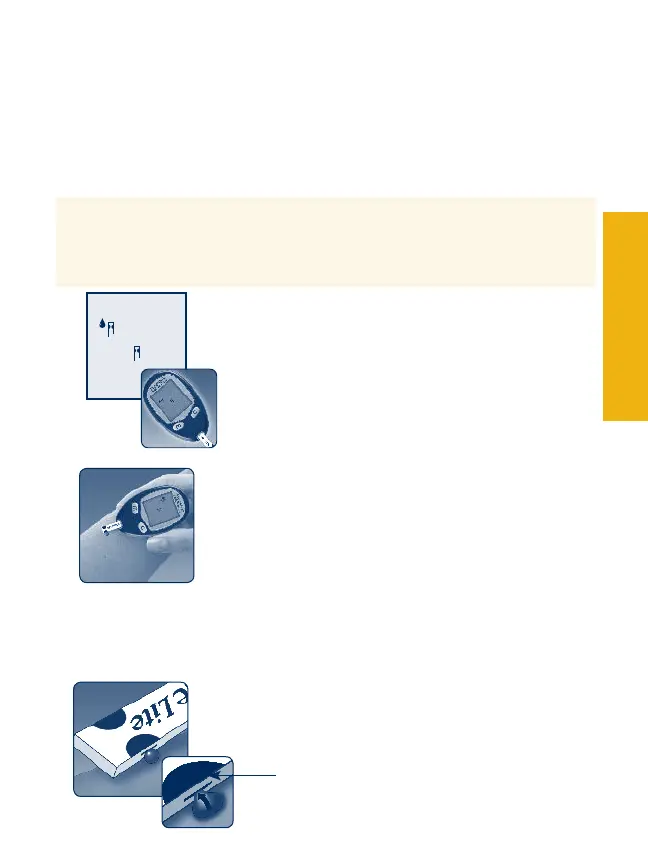 Acerque la tira de prueba FreeStyle Lite a b.