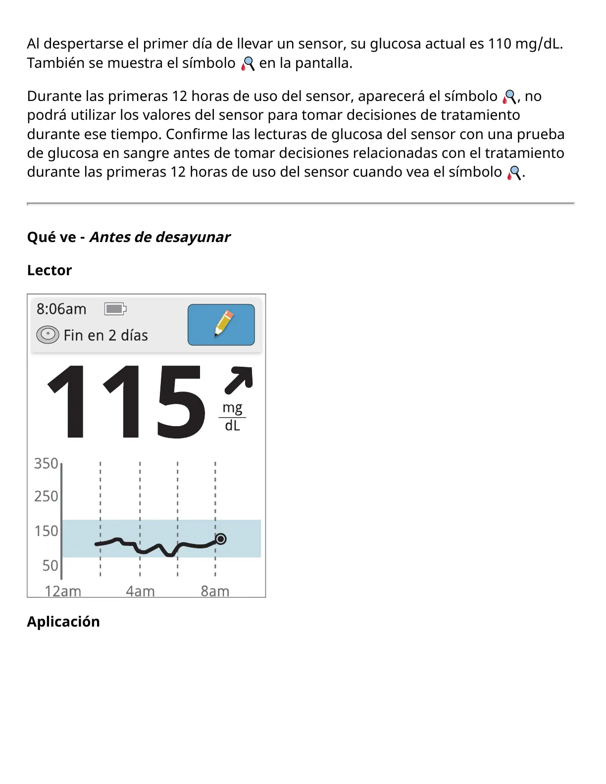 durante las primeras 12 horas de uso del sensor cuando vea el símbolo