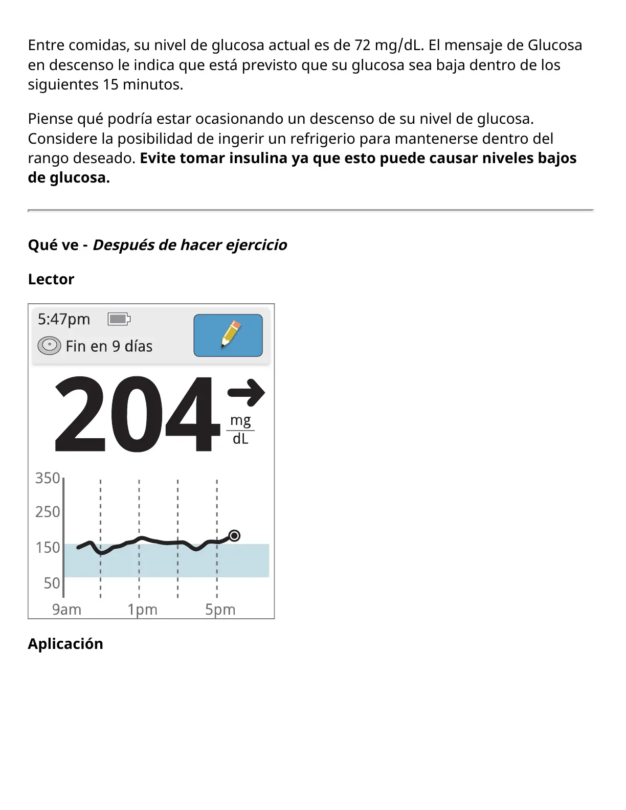 en descenso le indica que está previsto que su glucosa sea baja dentro de los
