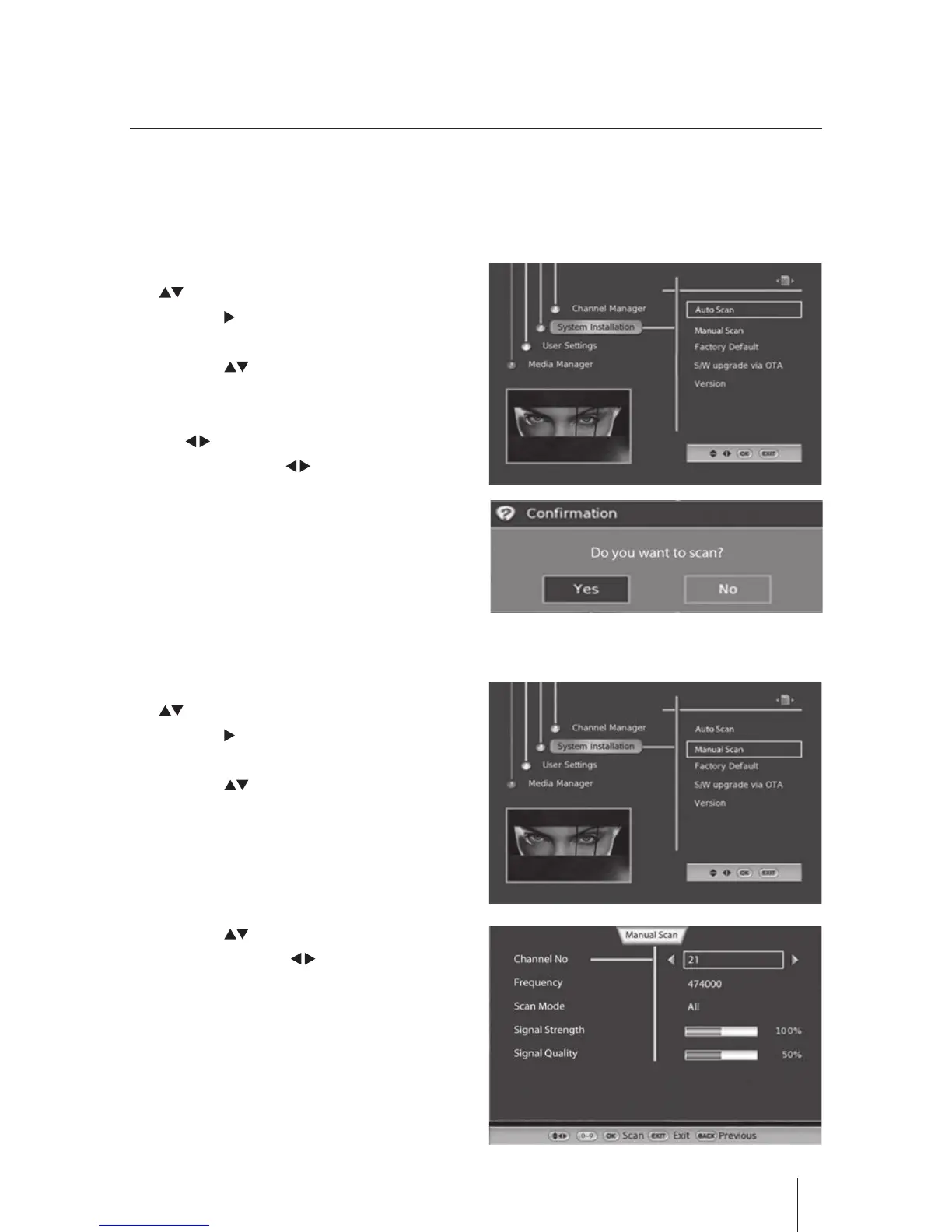 2. Press the buttons to select Auto Scan