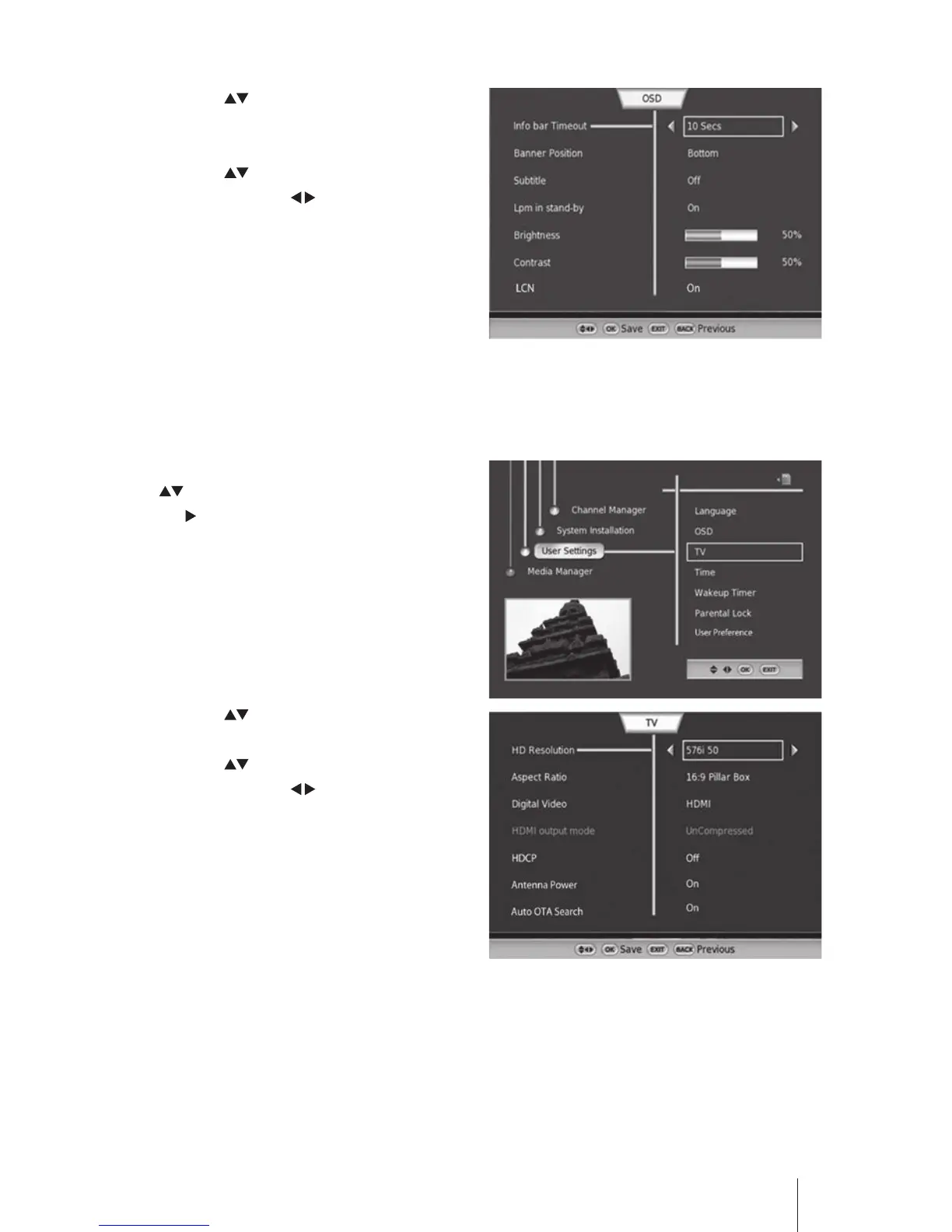 output mode / HDCP / Antenna Power and Auto OTA Search.