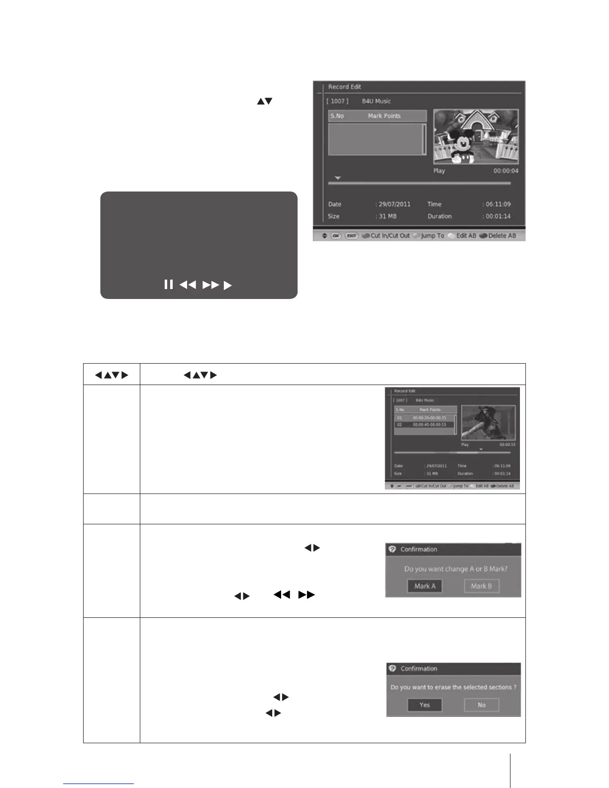 • Press the Blue color button to delete when you selected the cut progammes in the