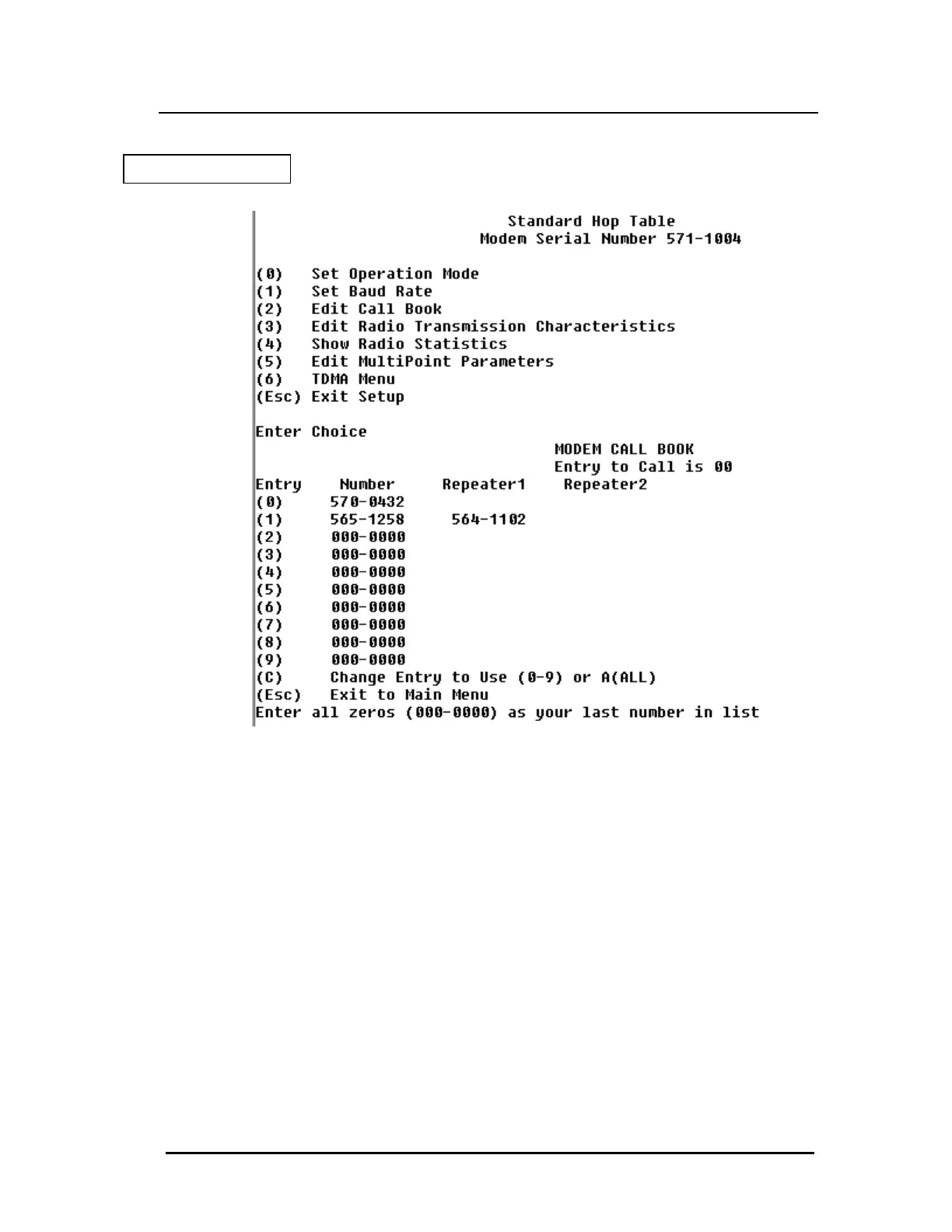 Call Book menu screen. If you enter a repeater number you will then be prompted