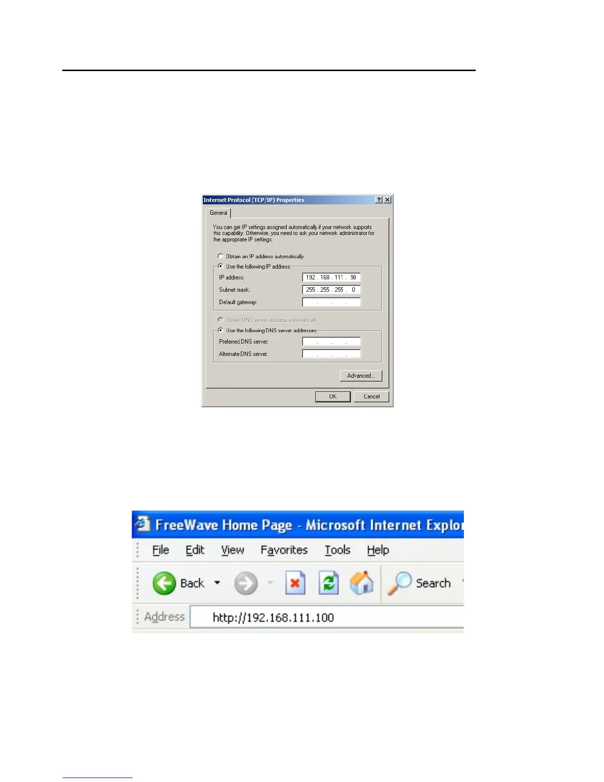 your web browser (Internet Explorer) and type 192.168.111.100 into the address bar