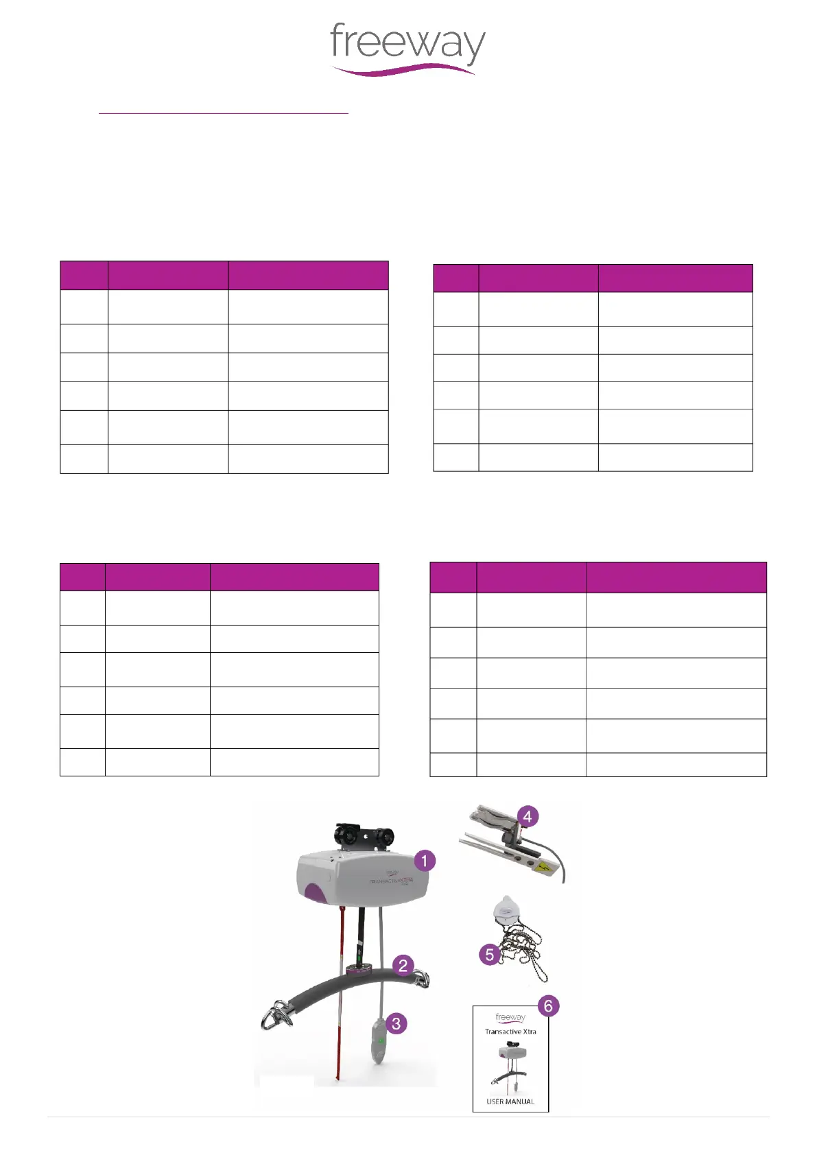 Please see below to familiarise yourself with the components of the Freeway Transactive Xtra Hoist. The images below show the