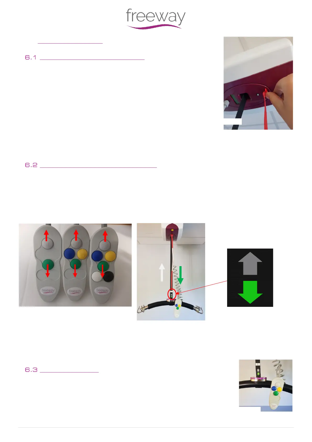 attaching the sling or positioning an individual. The UP/DOWN functions of the handset buttons are in relation to the travel of
