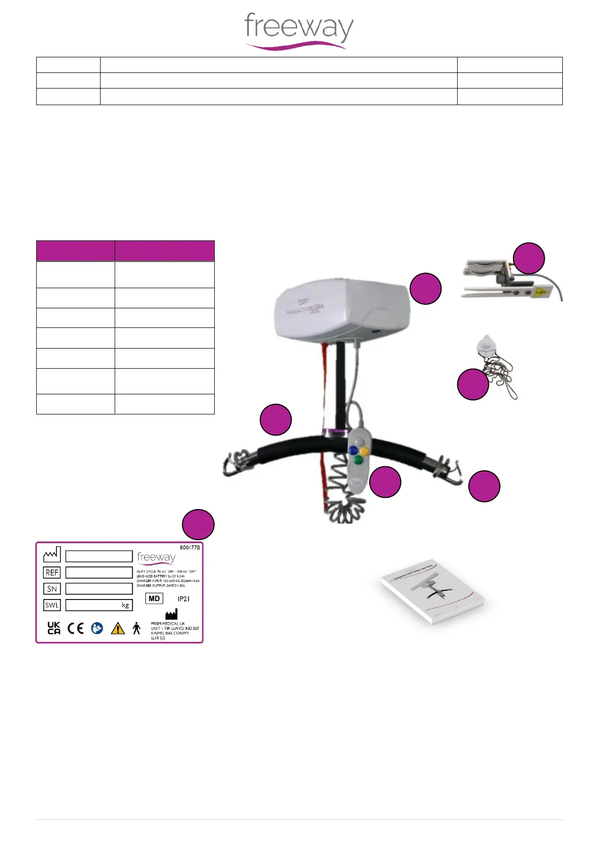 the contents of the ceiling track hoist. If you have not received all the components contact your local dealer