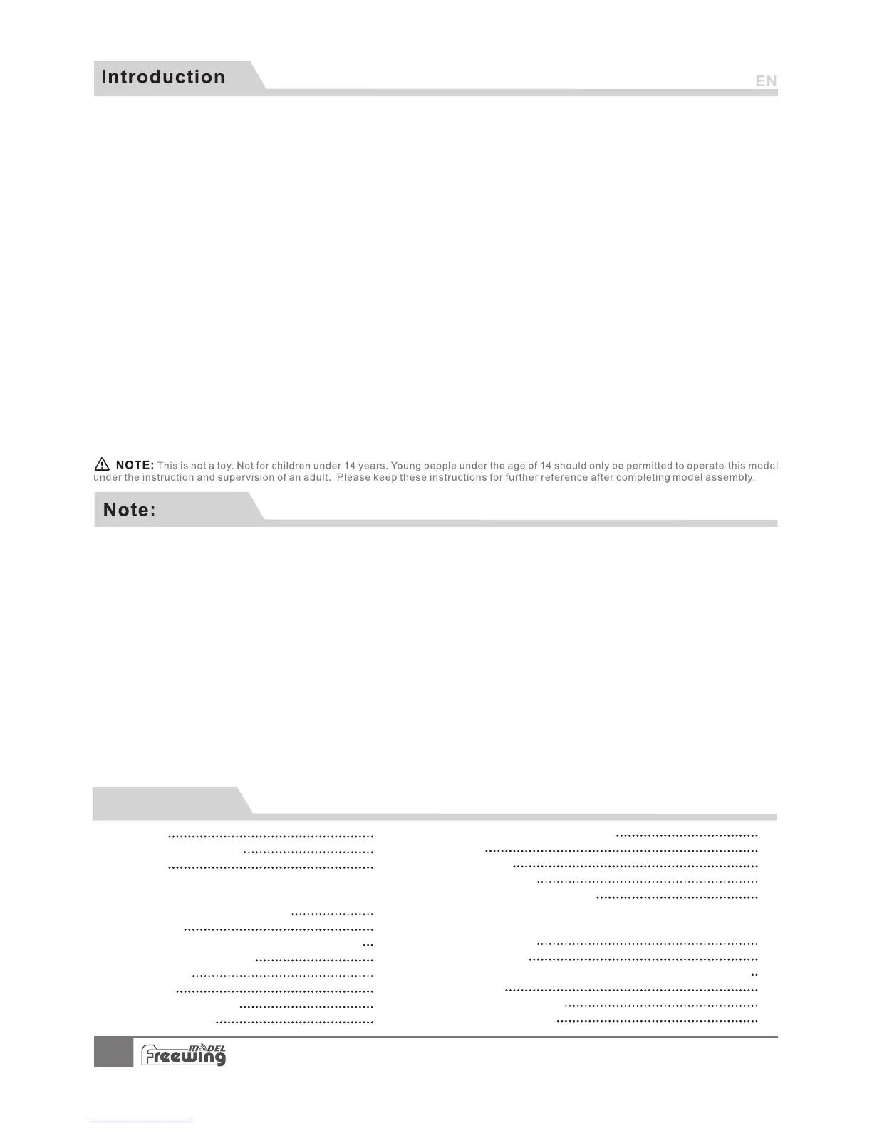 3. Freewing and it's vendors will not be held responsible for any losses due to improper assembly and operation.