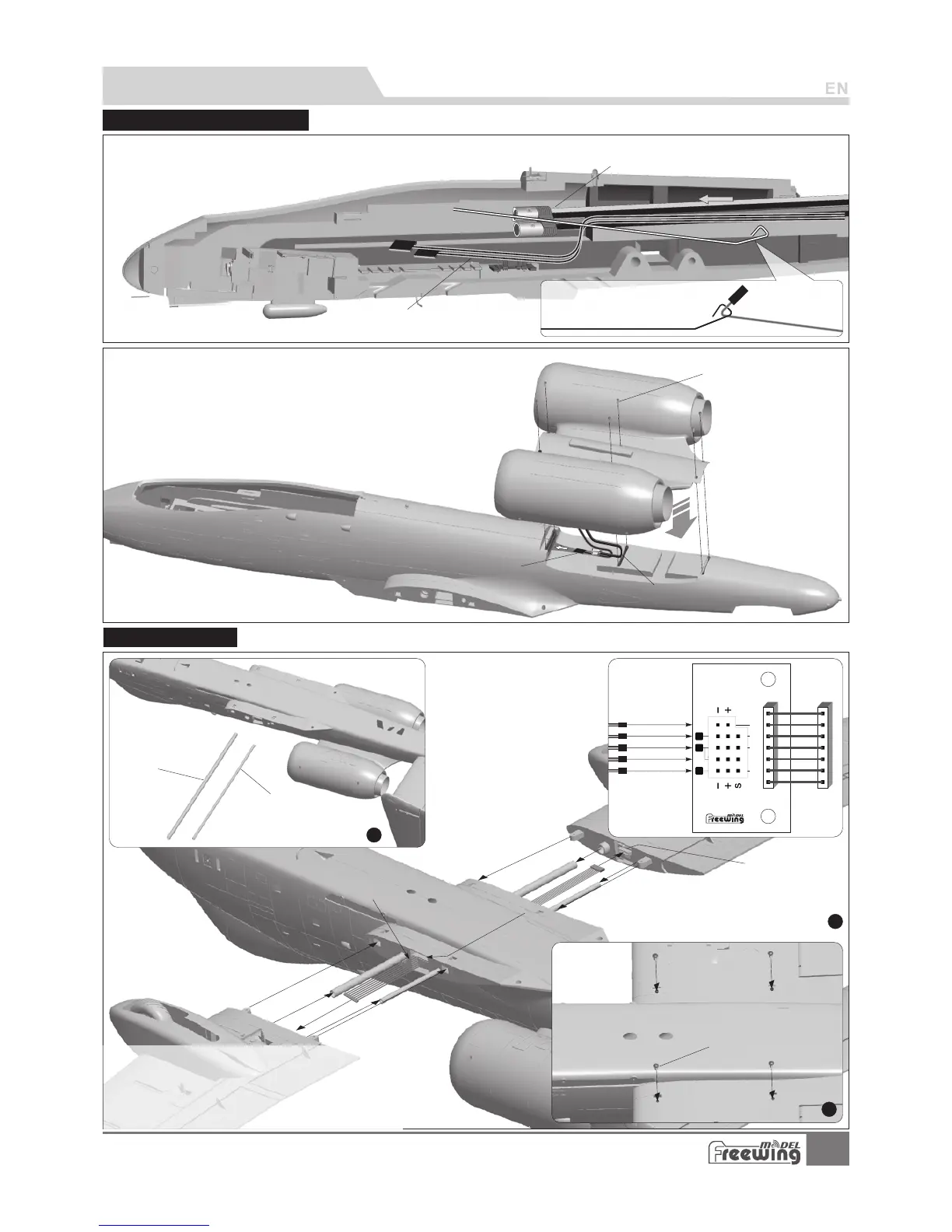 1.Use the metal wire to pull the ESC cable and throttle cable to the battery compartment.
