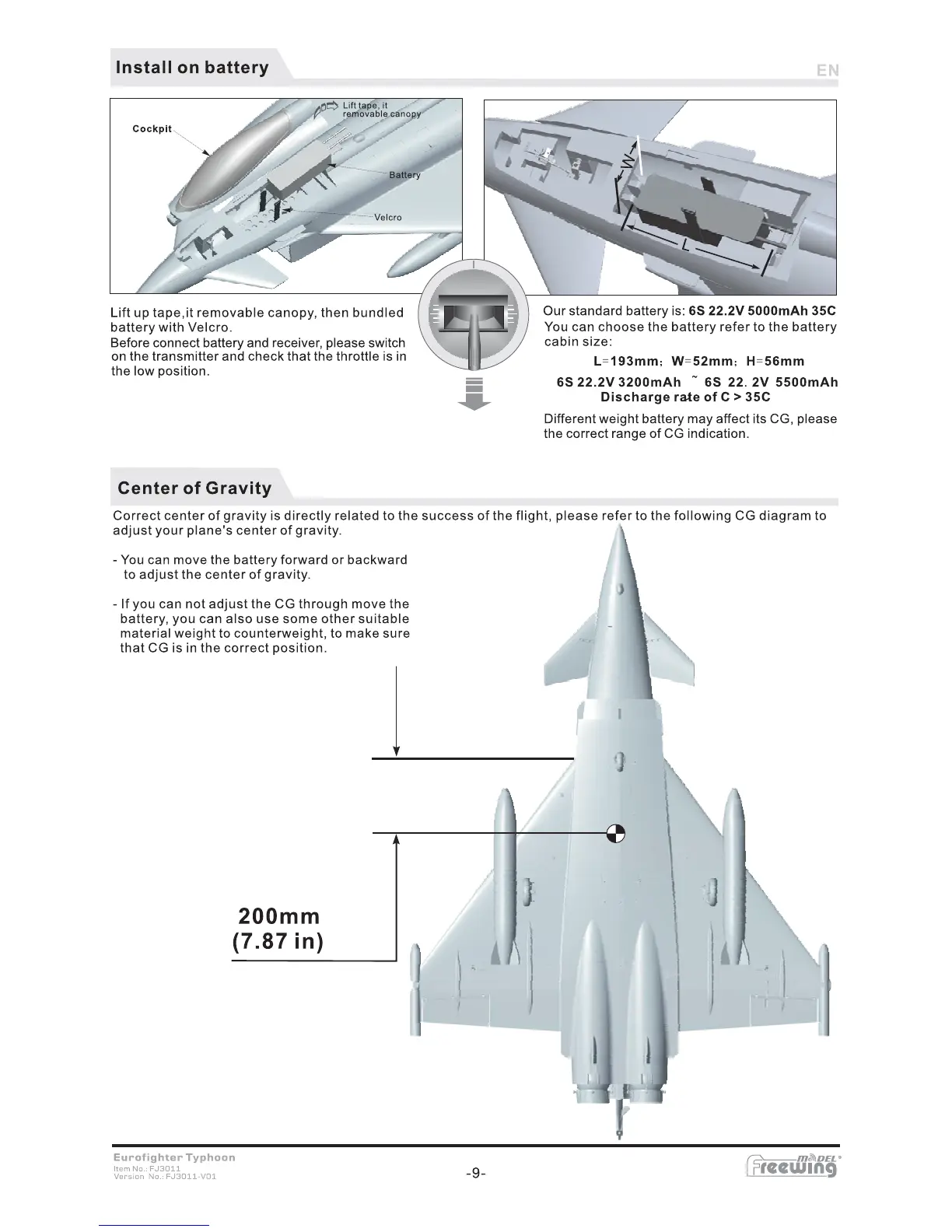 Freewing Eurofighter Typhoon V2 - Install on Battery; Center of Gravity