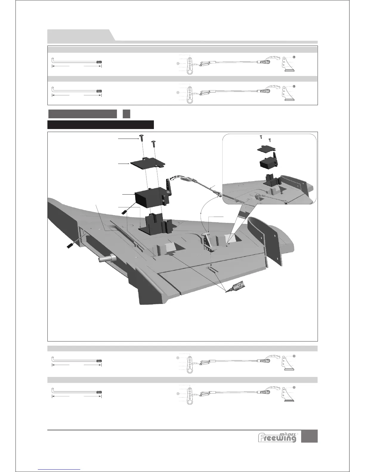 5. Connect pushrod (E)to the servo arm and adjust its length so the control surface is in the neutral