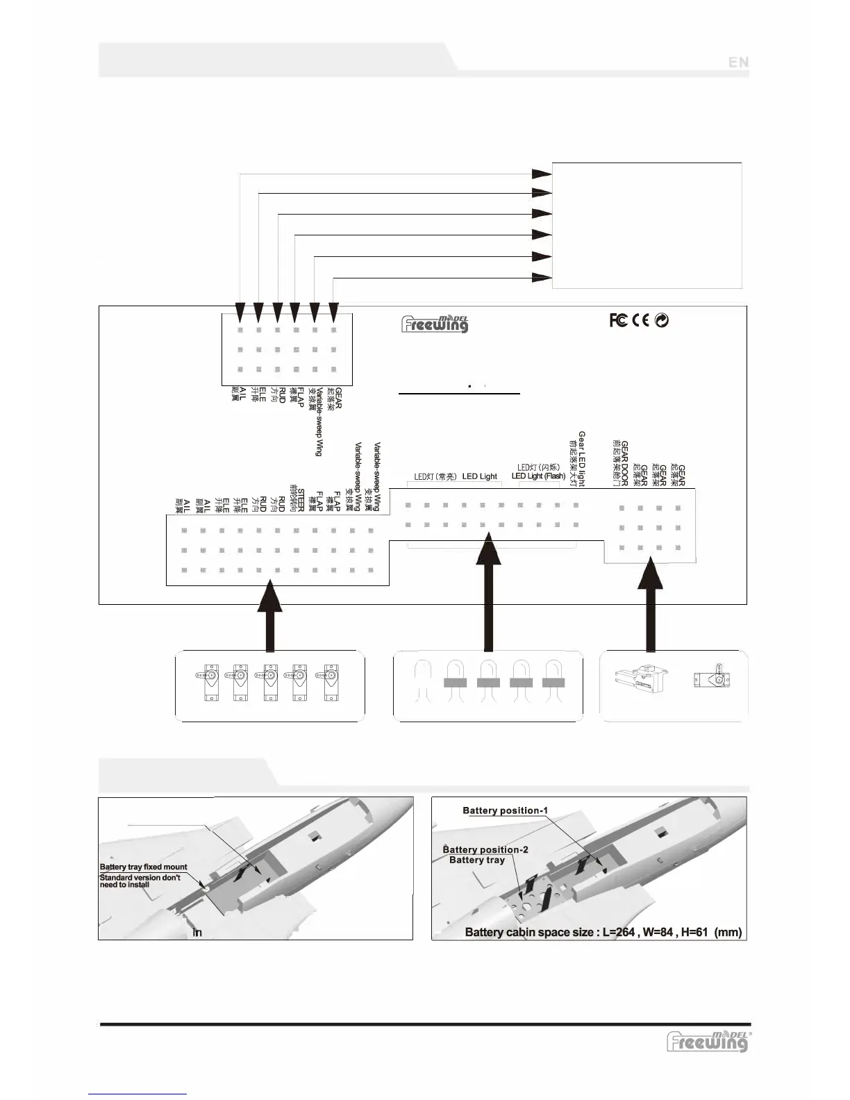 With reference to the diagram, connect the servo cables to the integrated circuit module and the receiver