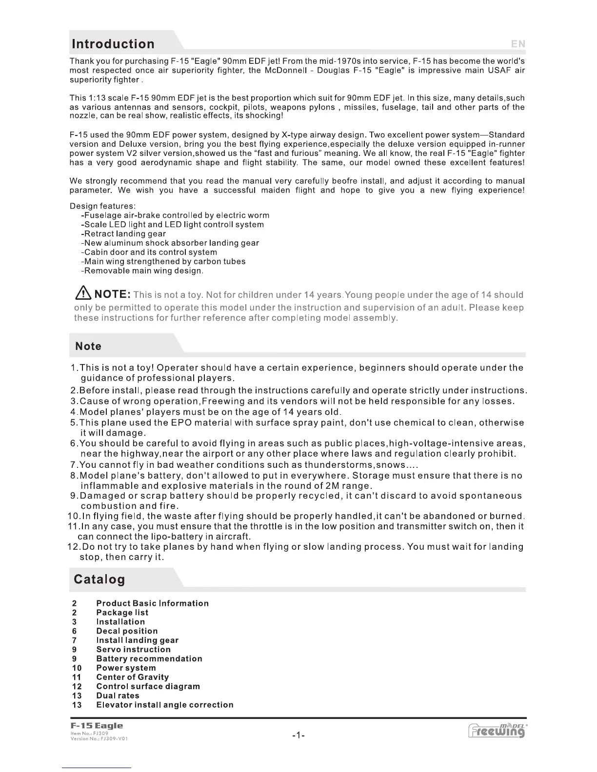 Freewing F-15 Eagle FJ309 - Introduction; F-15 Eagle Model Design Features; F-15 Eagle Safe Operation Notes