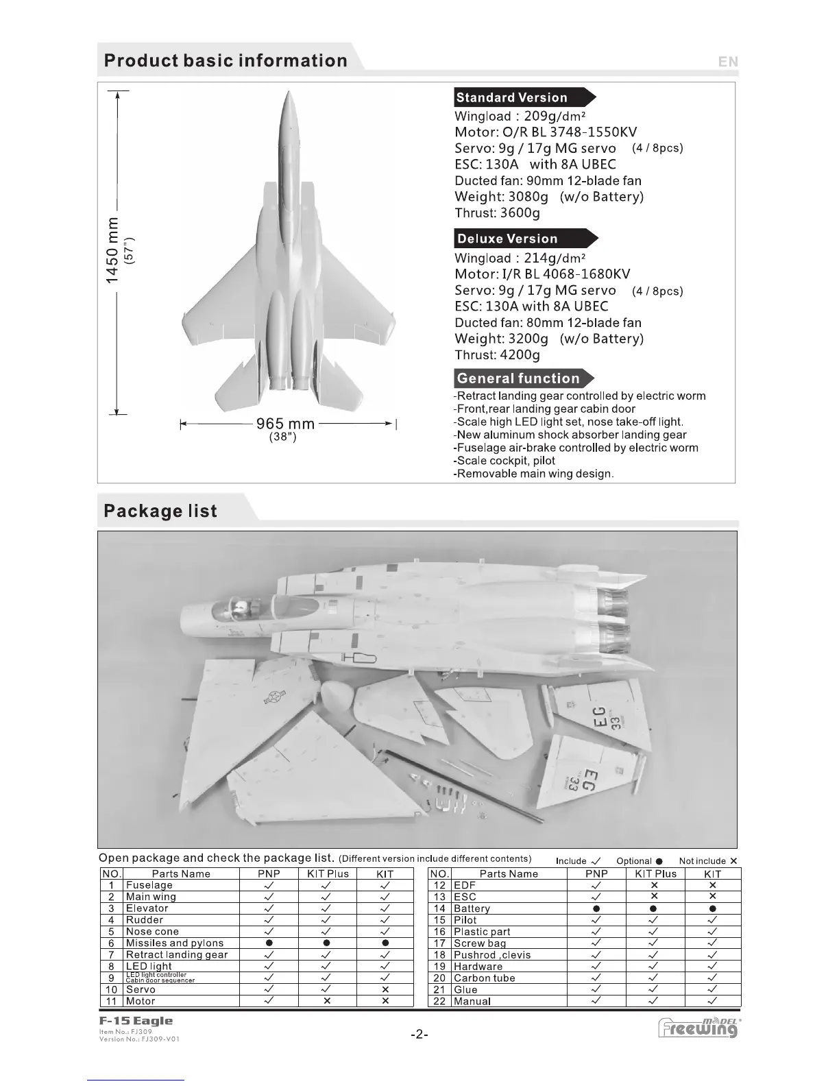 Freewing F-15 Eagle FJ309 - Product Overview; F-15 Eagle Product Specifications; F-15 Eagle Package Contents List